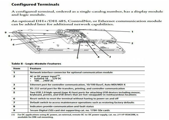 | Stromverbrauch, DC: | 35W Max (1,46A bei 24V DC) | Modell: | 2711P-T6C21D8S-B |